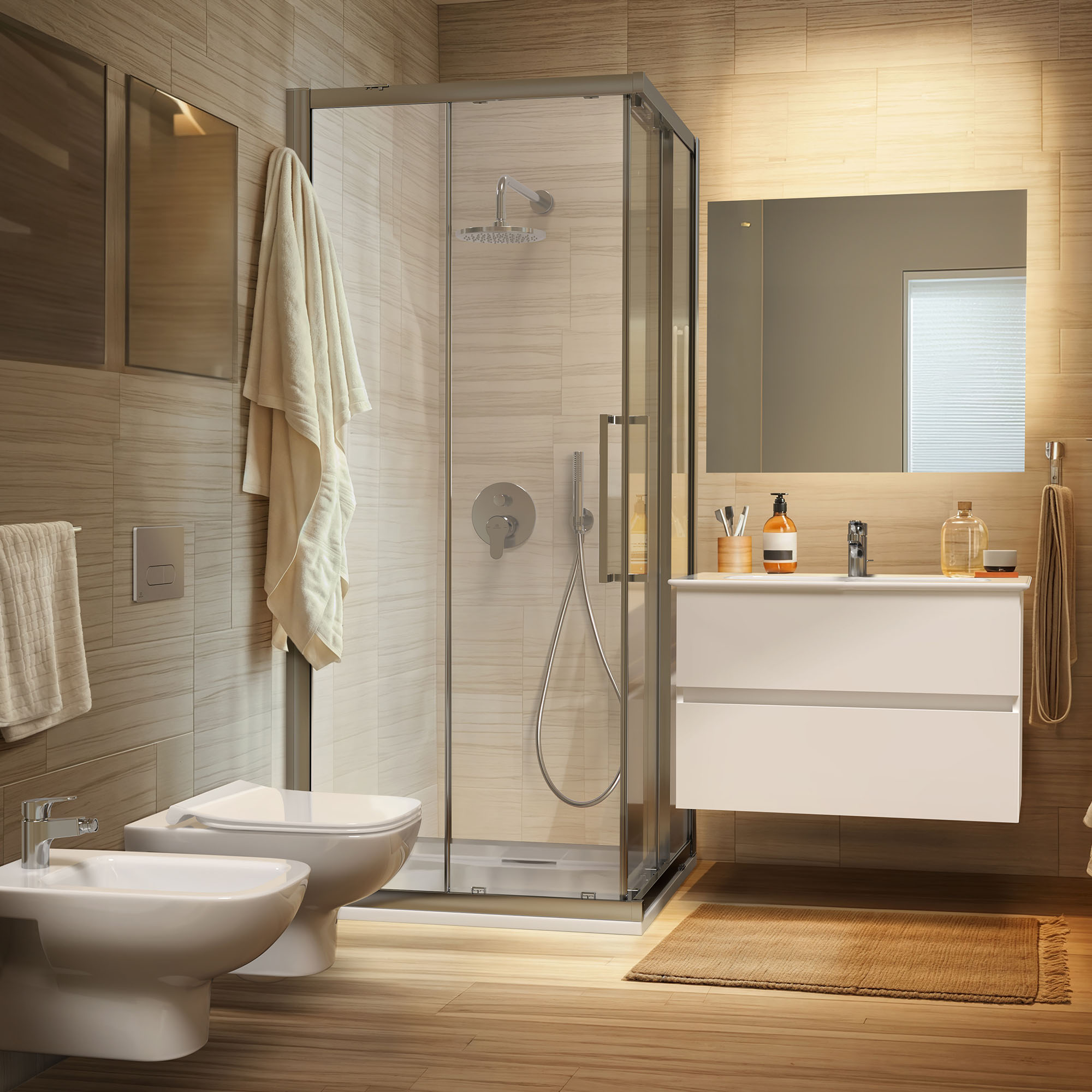StoneTech is an advanced material containing 35-40% recycled content, including marble and production waste; these trays are entirely fiberglass-free and 100% recyclable, exclusive to Ideal Standard’s UltraFlat Evo range. At the end of their life, they can be repurposed for road bases or construction projects. StoneTech also requires approximately 45% less resin than acrylic shower trays, while maintaining exceptional durability. The surface has a Class C anti-slip rating and is antibacterial to help maintain hygiene without compromising on style. These trays can also be trimmed on all four sides to accommodate all shapes and sizes.