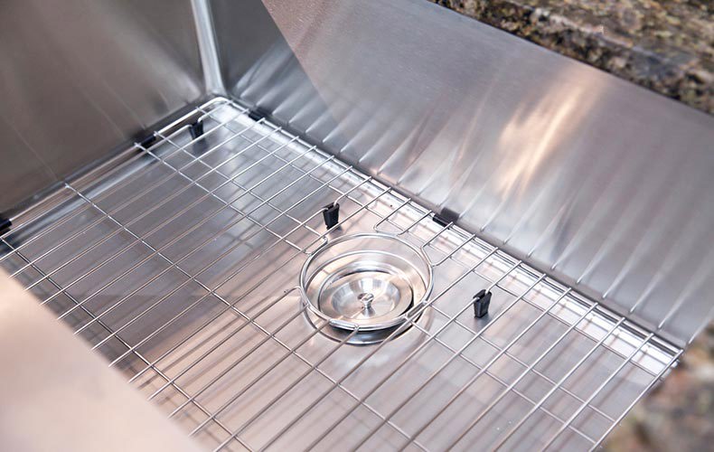 Certain types of sink materials and particularly stainless steel sinks can be weak against scratches from daily use. To avoid these scratches, place a protective matt in the sink to absorb the impact from utensils and dishes. A range of sink basin protectors are available depending on your style preference.