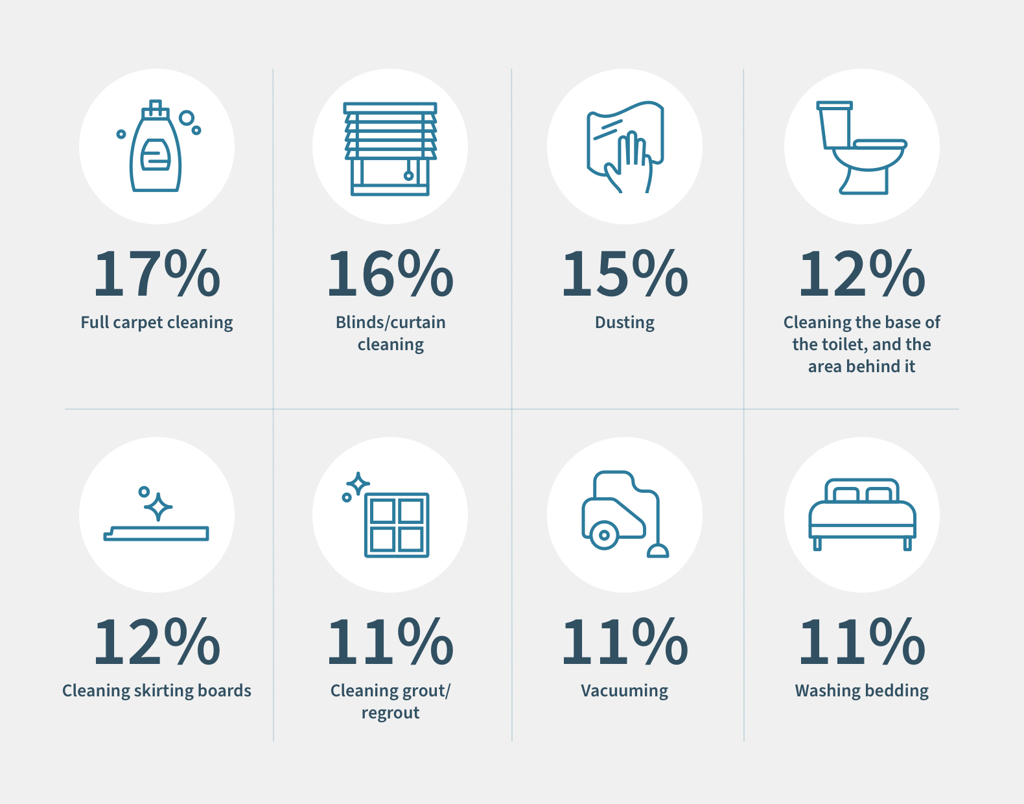 - Cleaning skirting boards (12%)