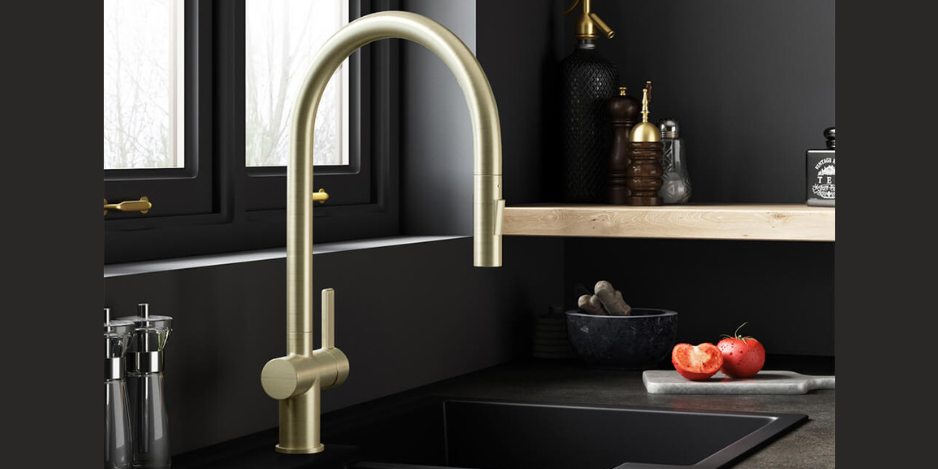 A new kitchen tap can make a massive difference to your space without having to fork out on a whole new renovation. In fact, updating your usual chrome tap to a more impactful gold finish can add style points as well.