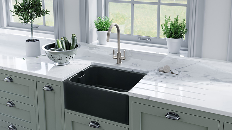 The Mayon is available in a modern Ash Black or Dove Grey finish, alongside a more traditional crystal white, so you can tailor your sink to your own unique style.